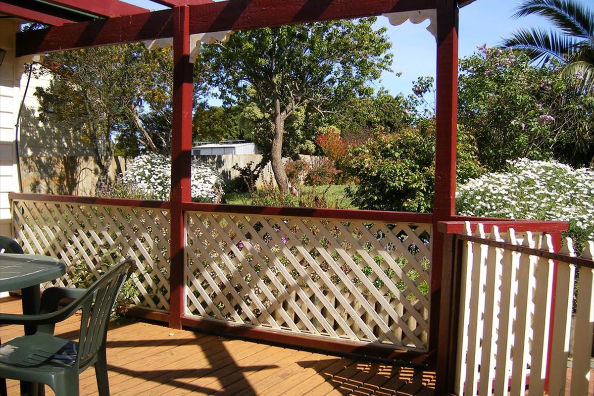 The cottage is very spacious and contains all conveniences and modern quality fittings. It has 2 bedroons, a full kitchen, laundry, bathroon, lounge, dining area, laundry, patio and a large lock-up garage for car or bike storage. There is a paved wash down area suitable for bike washing.